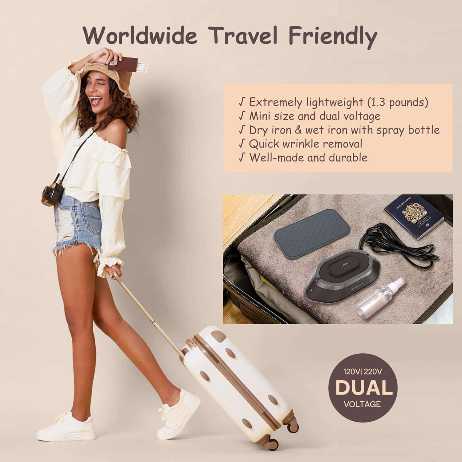 The Newbealer Travel Iron stands out with its dual-voltage capability (120V/220V), making it highly convenient for international travelers. You won’t have to stress about voltage compatibility as you smooth out your clothes across different continents. The iron’s lightweight design ensures that it doesn’t add unnecessary weight to your luggage, an essential for those on the go.